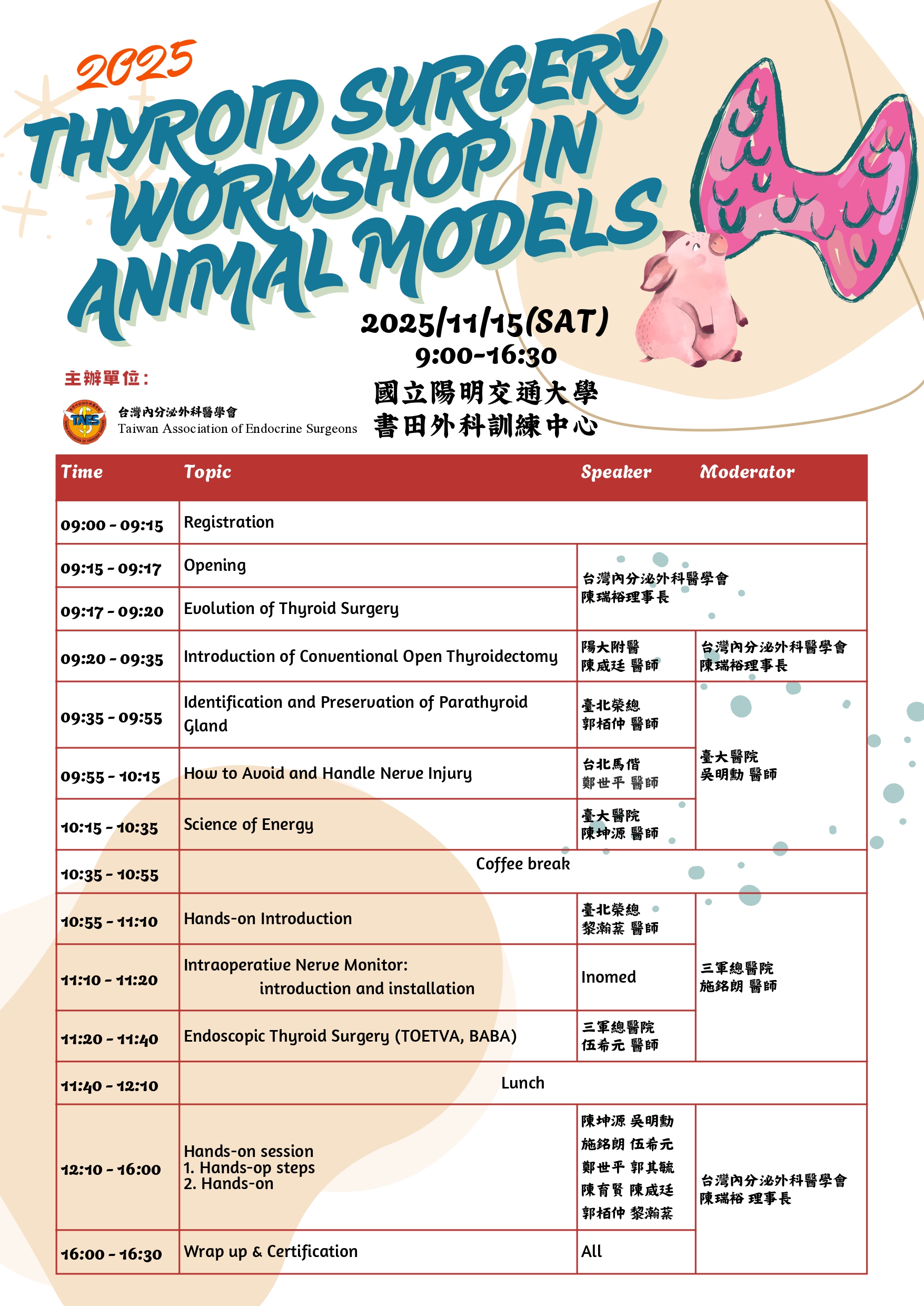 活動地點:國立陽明交通大學書田外科訓練中心 (台北市北投區立農街二段155號醫學二館4樓)