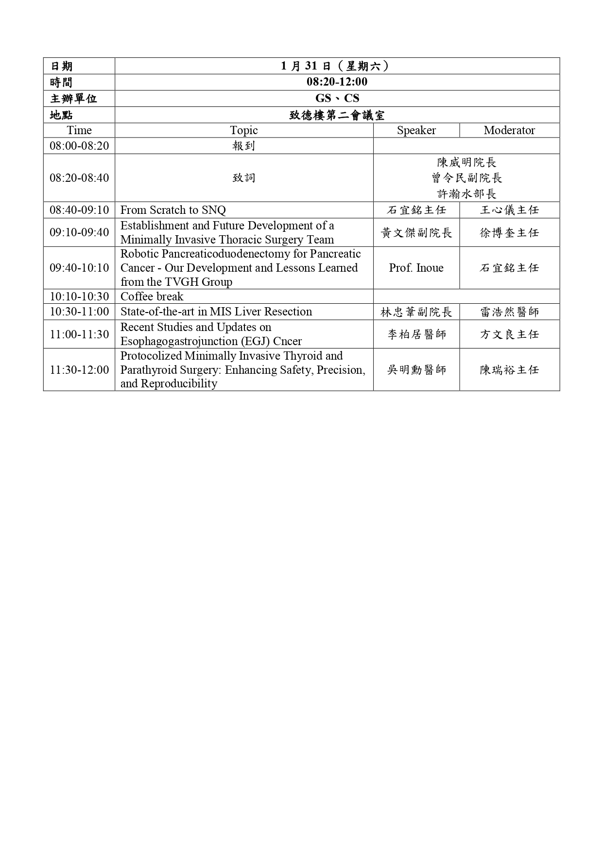 2026年度外科週